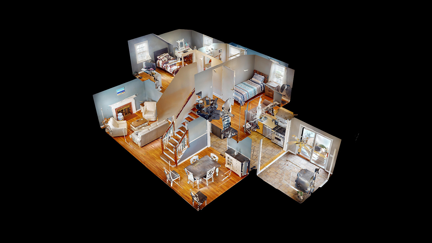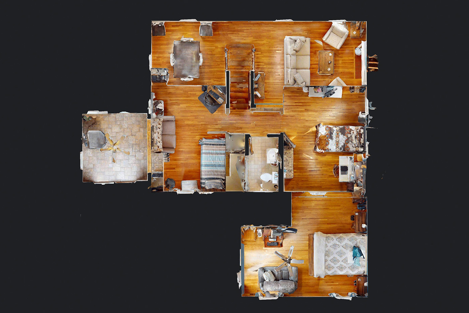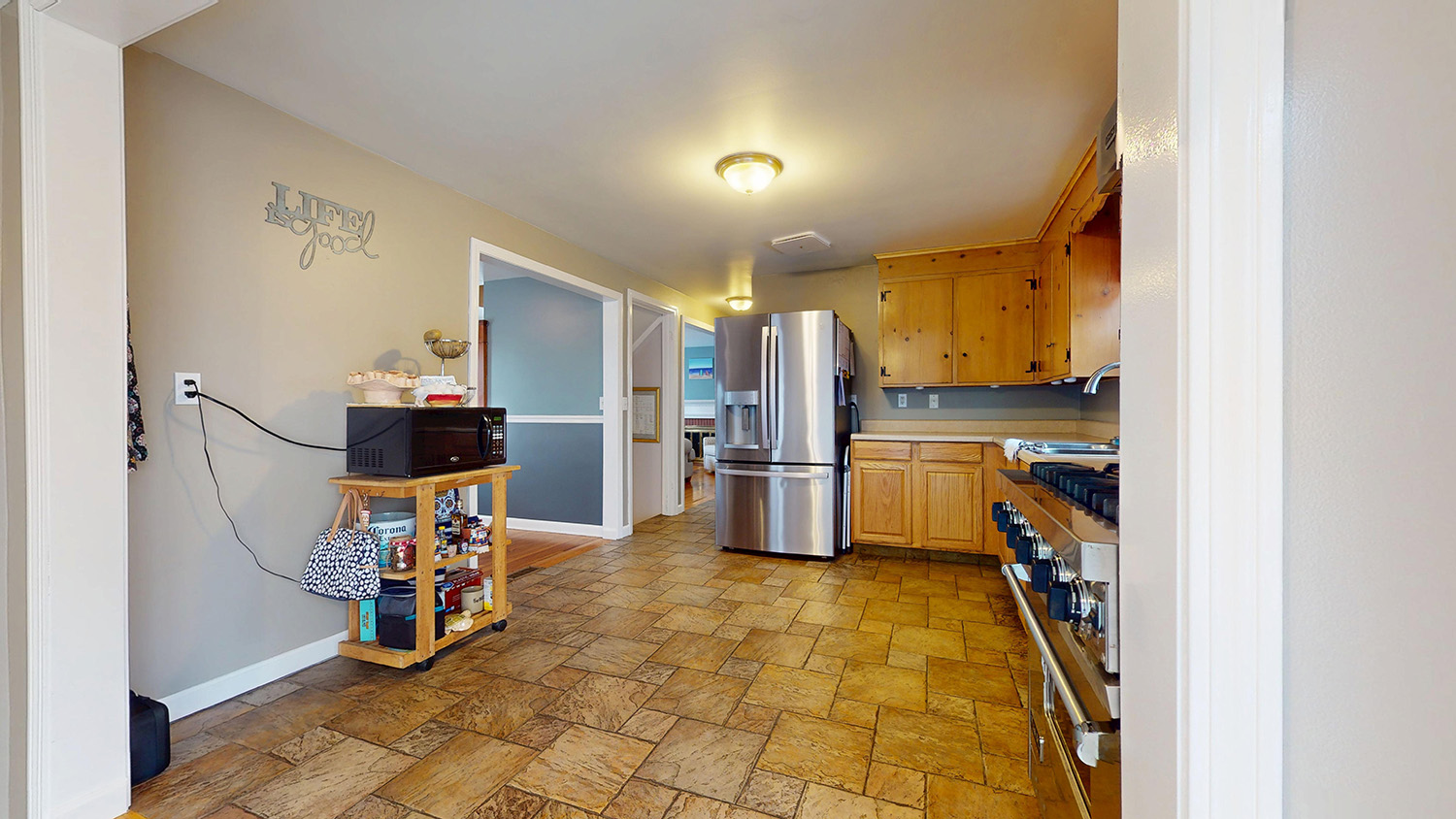 The main level features large living areas filled with natural light, providing plenty of space to relax or gather with guests. At the center of the home is a modern kitchen, thoughtfully designed and highlighted by a Viking range, making it both functional and stylish for home cooking.